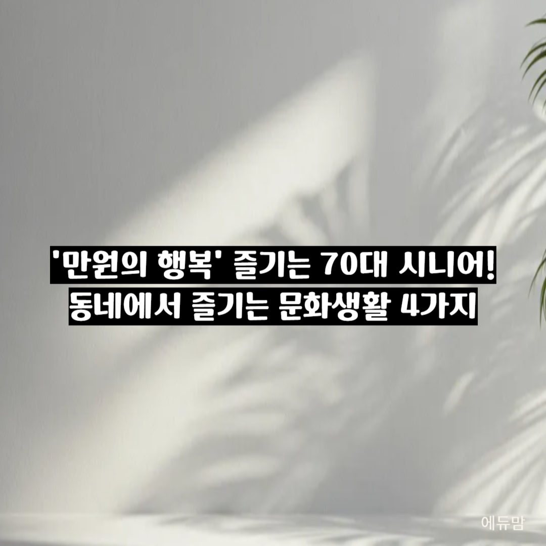 | "70대 시니어 여러분, 비싼 돈 들이지 않고도 동네에서 알차게 즐길 수 있는 '만원의 행복' 문화생활, 함께 찾아봐요! 인생 2막을 더욱 풍요롭게 채울 지혜를 나눕니다." |